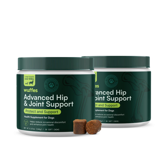 Wuffes Advanced Dog Hip and Joint Supplement with Glucosamine, Chondroitin, Omega 3, MSM, and Green Lipped Mussel, 30 Pork Flavored Chews for Large Dog Breeds